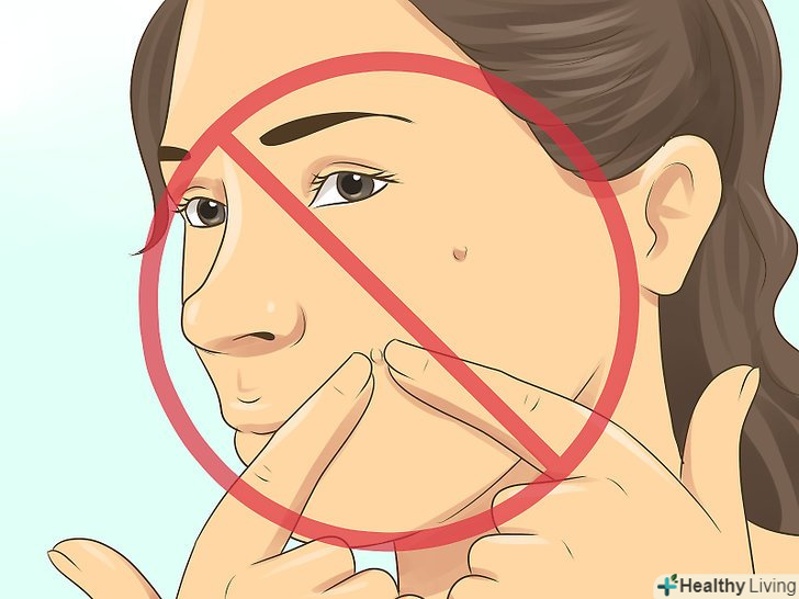 Намагайтеся не чіпати своє обличчя. Так як протягом дня руки стосуються безлічі предметів, вони передають незліченну кількість бактерій на ваше обличчя, в результаті чого виникають прищі. Якщо ви спираєтеся головою об руки, швидше за все, у вас є висипання на підборідді або щоках. Щоб цьому запобігти, регулярно мийте руки і стежте за тим, щоб якомога менше доторкатися до особи. [9]