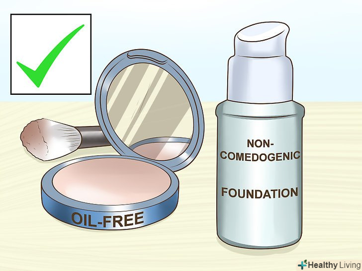 Спробуйте різну косметику. і хоча косметика може прекрасно приховувати прищі, в той же час, вона може бути їх збудником. Якщо ви будете переборщувати з макіяжем і користуватися засобами з високим вмістом масел, це може закупорити пори і занести бруд. Якщо на певних частинах вашого обличчя з'являються прищі, експериментуйте з різною продукцією, щоб перевірити, чи не стане шкіра чистіше. [7]- В цілому, намагайтеся користуватися засобами, які не містять масел і не викликають вугровий висип. Також варто пошукати косметику, в складі якої є інгредієнти для боротьби з прищами.