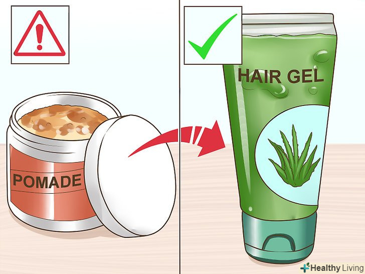 Міняйте продукцію для волосся. якщо ви страждаєте від висипань на лобі, на шкірі голови , шиї або спині, винуватцями цього можуть бути засоби для догляду за волоссям. Продукти, такі як гелі, помади та спреї, зазвичай блокують пори та дратують шкіру. Вони також можуть викликати алергічну реакцію, що веде до утворення прищів. Щоб цього уникнути, експериментуйте з різними засобами, щоб знайти те, яке не буде шкодити вашій шкірі. [8]- В цілому, шукайте продукцію, склад якої не дуже великий і в основному містить натуральні інгредієнти. Зокрема, зверніть увагу на засоби, що не містять ароматів і не викликають вугровий висип (не закупорюють пори).