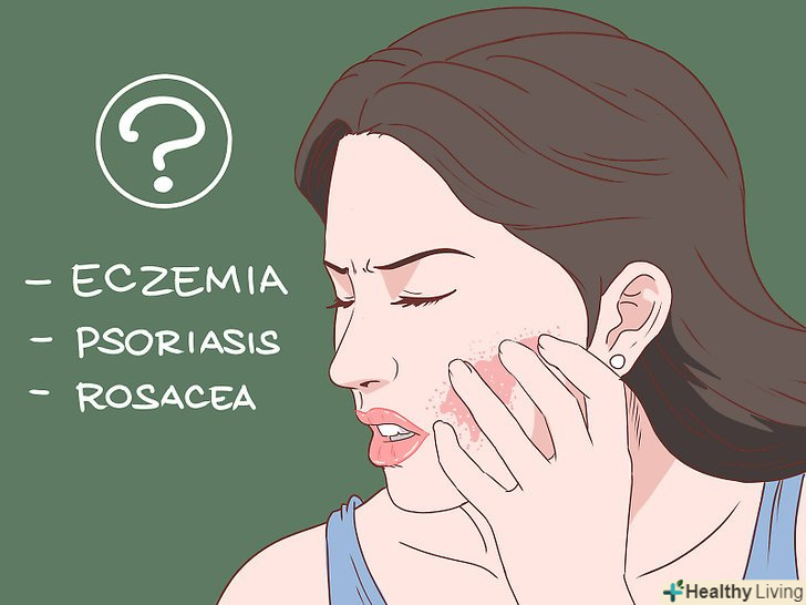 Дізнайтеся про типи запальних захворювань шкіри. перш ніж намагатися лікувати роздратування на шкірі, важливо зрозуміти, що існують різні види запальних захворювань. Провівши дослідження, Ви зможете визначити, з яким захворюванням вам доводиться мати справу. Крім того, якщо ви будете знати правильний діагноз, вам буде легше підібрати ефективне лікування. [7]- Екзема-це досить поширене захворювання шкіри, що характеризується почервонінням і роздратуванням шкірних покривів.