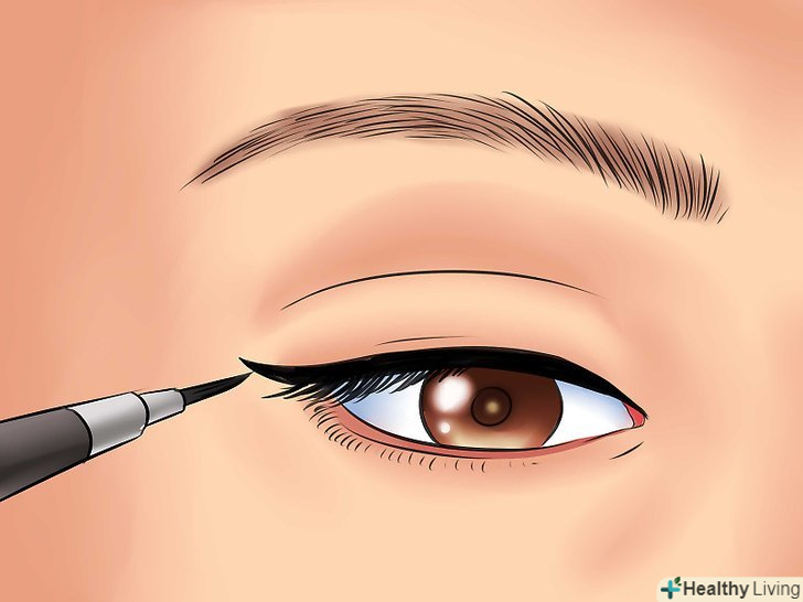 Акцентуйте увагу на віях. спробуйте використовувати чорну гелеву підводку в області верхньої лінії росту вій. Зупиніться на половині довжини, приблизно за 1,3 сантиметр до кінця лінії росту. Так ви зможете підкреслити вії. [3]