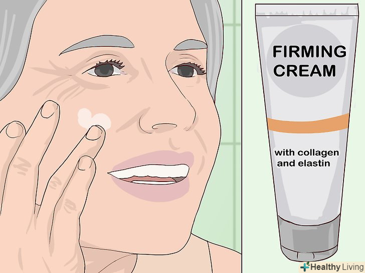 Спробуйте використовувати зміцнюючі креми, які сприяють виробленню колагену і еластину. колаген і еластин являють собою білки, які роблять шкіру більш пружною. Якщо ви стурбовані тим, що у вас в'яла шкіра, пошукайте відповідний зміцнюючий крем в магазині косметики, салоні краси або в Інтернеті. Виберіть такі креми, завдяки яким посилюється вироблення колагену і / або еластину, і наносите їх на вимагають підтяжки ділянки відповідно до вказівок на упаковці. [3]- Ваш організм повинен виробляти колаген самостійно для того, щоб шкіра залишалася пружною. Молекули цього білка занадто великі, щоб проникнути під шкіру зовні, тому ефективніше використовувати креми, які сприяють виробленню колагену, а не містять його. [4]