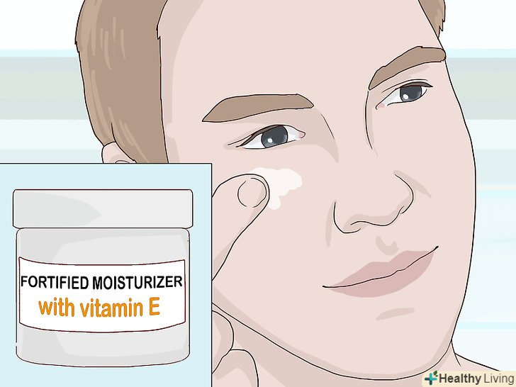 Зволожуйте шкіру вітамінізованими засобами. знайдіть в аптеці або інтернеті зволожуючий засіб з вітамінами E, A, C і соєвими білками. Ці вітаміни і білки допомагають зміцнити шкіру і розгладити зморшки. Щодня наносите зволожуючий засіб на проблемні ділянки. [9]- Якщо ви віддаєте перевагу більш натуральні засоби, спробуйте зволожувати шкіру кокосовим маслом. Багато хто вважає, що це також допомагає.