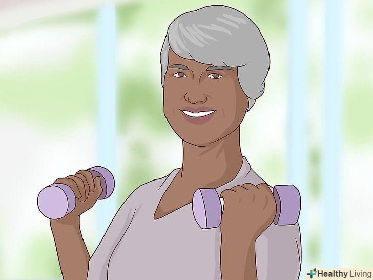 Займайтеся силовими вправами. Одним з кращих фізичних вправ для підтяжки шкіри є силові тренування. Станова тяга і жим з грудей дозволяють зміцнити м'язи живота, рук, спини і стегон, завдяки чому шкіра стає більш підтягнутою. Почніть з ваги 0,5-1 кілограм і регулярно виконуйте ці вправи в тренажерному залі або вдома. Намагайтеся виконувати 5 підходів по 6-8 повторів в кожному і не забувайте попередньо розминатися з більш легкими вагами і за допомогою кардиоупражнений. [11]- Не перенапружуйтеся. Почніть з малих ваг і поступово збільшуйте навантаження. Якщо ви втомилися, зробіть перерву.