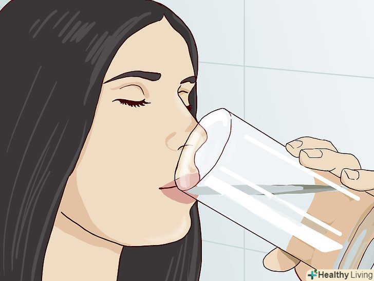 Підтримуйте водний баланс організму. якщо ви п'єте недостатньо води, виправте це. Намагайтеся щодня випивати близько двох літрів води. Це допоможе зміцнити і підтягнути шкіру. [12]- Щоб визначити, чи немає у вас зневоднення, перевірте, наскільки швидко ваша шкіра розгладжується після того, як ви вщипнете її. На кілька секунд стисніть шкіру на передпліччя або животі великим і вказівним пальцями, потім відпустіть. Нормально зволожена шкіра відразу ж повернеться на місце, в той час як при зневодненні це займе кілька секунд. [13]