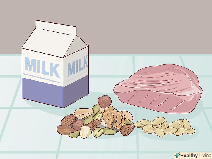 Їжте більше білкової їжі. щоб шкіра стала більш пружною, необхідно вживати багаті білком продукти. Вибирайте таку корисну білкову їжу, як сир, тофу, молоко, квасоля та інші бобові, насіння, горіхи і риба. Ці продукти містять поживні речовини, які допомагають організму виробляти колаген і еластин. [15]