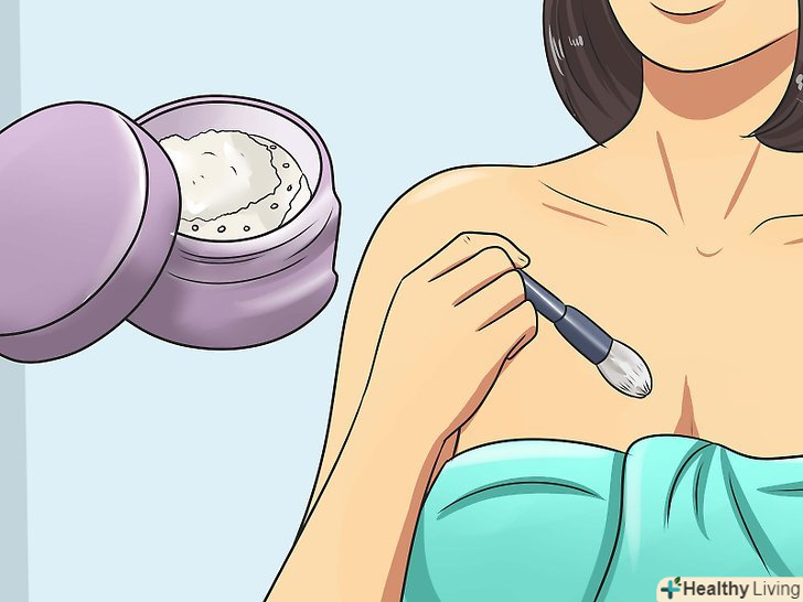 Завершіть процес за допомогою пудри. використовуйте широку кисть або пухівку для нанесення пудри. Чистим пензлем видаліть надлишки пудри. Пудра завершить процес, закріпивши тональну основу і зробивши макіяж більш стійким. [9]