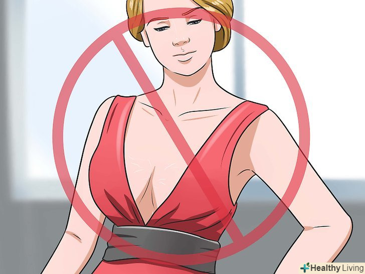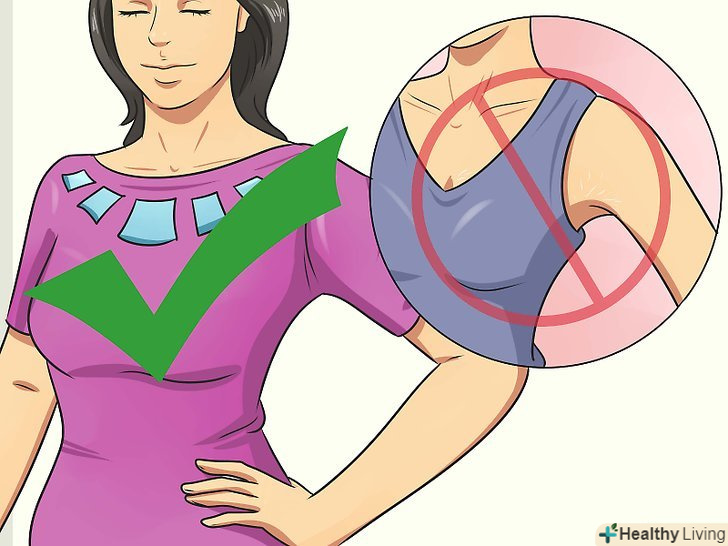 Відмовтеся від одягу з глибоким декольте. у період статевого дозрівання у дівчат можуть з'являтися розтяжки на грудях. В цьому випадку дефект шкіри можна приховати за допомогою одягу з неглибоким вирізом. У холодні місяці року можна носити водолазки.- Без примірки складно сказати, приховає чи обрана вами річ розтяжки в зоні декольте. Якщо ви вибираєте річ, яка приховає недоліки на вашій шкірі, обов'язково приміряйте її перед покупкою.