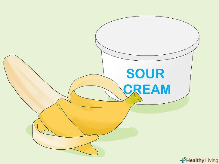 Використовуйте для лікування лущення бананове пюре. розімніть один банан і змішайте з половиною склянки (120 мл) сметани. У вас повинна вийти грудкувата суміш. Нанесіть суміш на шкіру і залиште на 20 хвилин. Потім змийте чистою водою. [13]- Також можна замінити сметану чвертю склянки (60 мл) йогурту.
