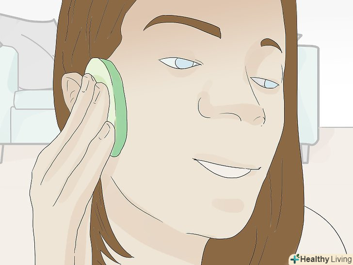 Потріть лущиться шкіру скибочкою огірка. тріть шкіру світло-зеленою м'якоттю огірка, а не темно-зеленою шкіркою. Проводьте процедуру близько 20 хвилин. Потім вмивайтеся теплою водою. Повторюйте процедуру в міру необхідності, поки стан шкіри не покращиться. [14]- Як варіант, можна подрібнити огірок до пастоподібного стану або натерти його на тертці. Нанесіть огірок на шкіру і залиште на 15-20 хвилин. Після цього вмийтеся теплою водою.
