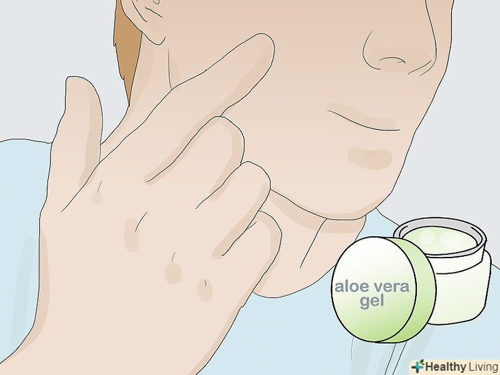 Зволожуйте шкіру, використовуючи гель Алое вера. Алое Віра-ефективний засіб для лікування подразнення шкіри. Нанесіть гель на лущиться ділянку шкіри і м'якими рухами втирайте його в шкіру. Зачекайте, поки ділянка шкіри висохне. [8]- Гель Алое вера можна придбати в аптеці або магазині косметики.