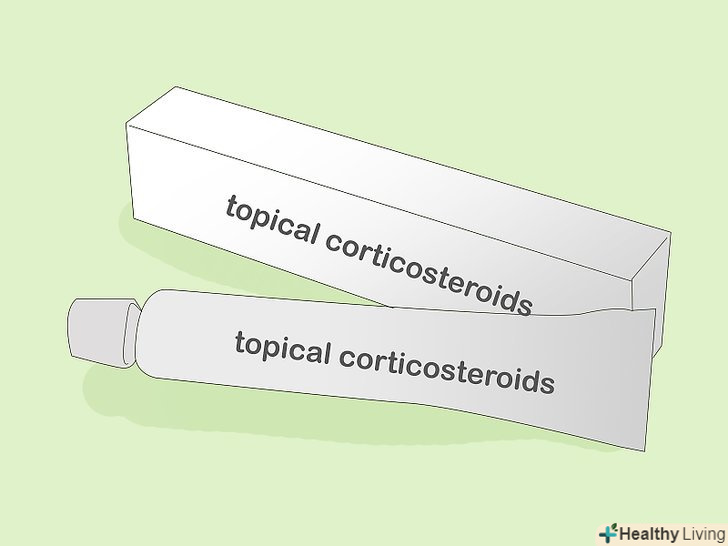 Використовуйте кортикостероїдні препарати для зовнішнього застосування, якщо проблема з лущенням шкіри носить серйозний характер. кортикостероїдні препарати для зовнішнього застосування, які наносять безпосередньо на шкіру, зменшують запалення і лущення. Видавіть невелику кількість засобу, рекомендоване в інструкції, на палець. Нанесіть засіб на шелушащиеся ділянки шкіри. [10]- Кількість засобу залежить від того, на яку частину тіла ви збираєтеся його наносити, оскільки на деяких ділянках шкіра набагато тонше, ніж на інших.