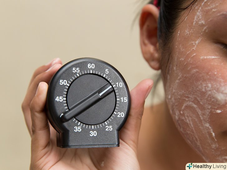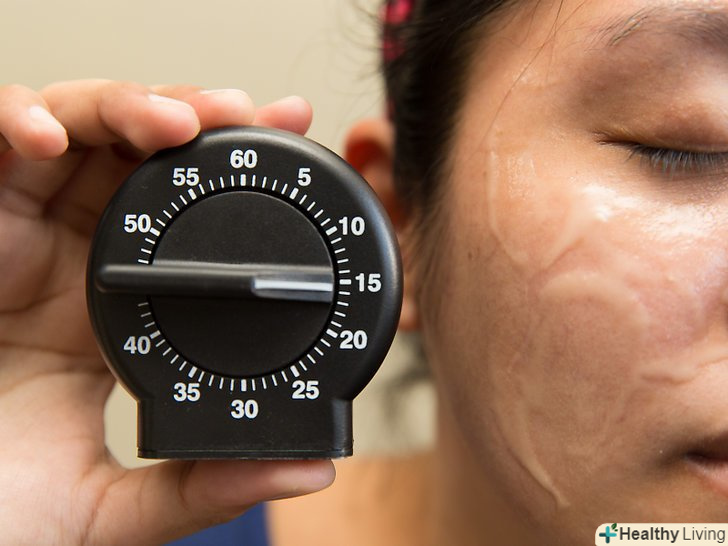 Нанесіть маску на обличчя. пальцями рівномірно розподіліть маску по шкірі обличчя. Уникайте області губ, очей і брів. Деякі з інгредієнтів, які входять до складу цієї маски, використовуються для депіляції. [5]