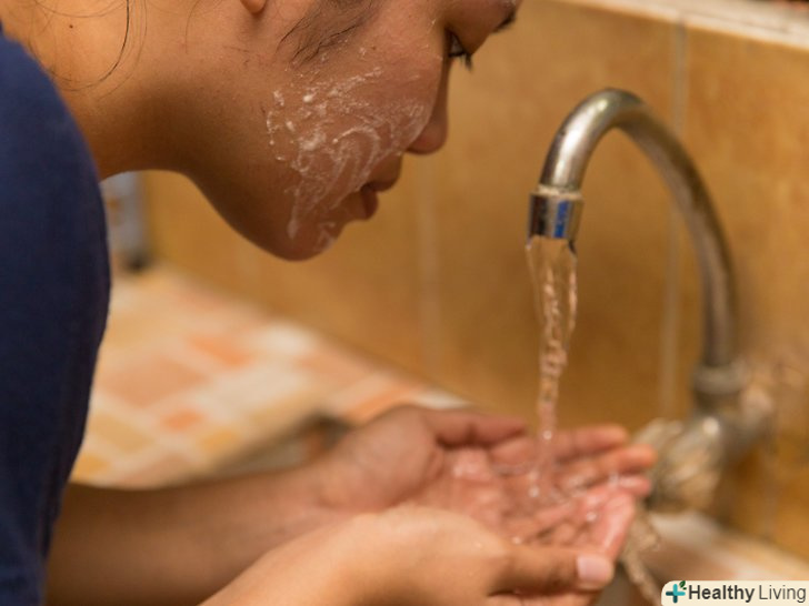 Змийте маску теплою водою. нахиліться над раковиною і обполосніть обличчя теплою водою. Акуратно потріть шкіру обличчя, щоб видалити залишки маски. Якщо шкіра як і раніше липка, ви можете вмитися, використовуючи засіб для вмивання.