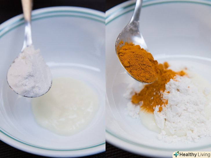 Помістіть всі інгредієнти в миску. вам знадобиться 1 чайна ложка порошку куркуми, 2 чайні ложки рисового борошна і 3 столові ложки йогурту без добавок.- Якщо ви не можете знайти рисове борошно, можна використовувати нутове борошно або подрібнену вівсяну крупу. [3]