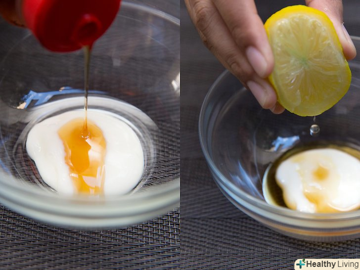 Помістіть всі інгредієнти в миску. вам знадобиться 1 столова ложка йогурту без добавок, 1 столова ложка меду і 1 чайна ложка лимонного соку.
