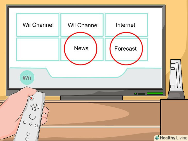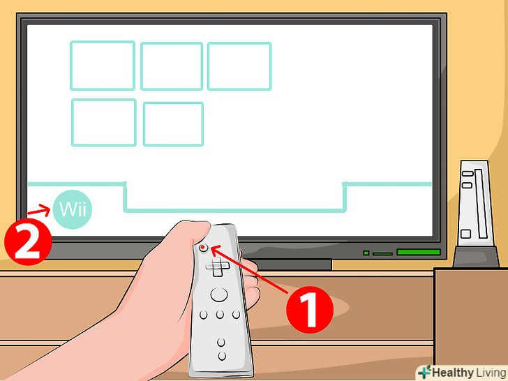 Увімкніть пристрій Wii і натисніть кнопку A на пульті управління Wii, щоб відкрити меню Wii.використовуйте пульт, виберіть кнопку "Wii". Це кругла кнопка внизу ліворуч.