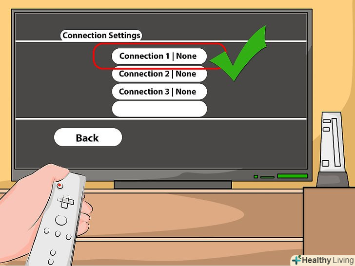 Виберіть перше підключення " Connection 1: None."Виберіть бездротове з'єднання" Wireless Connection " з меню. Потім натисніть ЗНАЙТИ точку доступу " Search for an Access Point."Тоді Wii знайде всі доступні точки доступу. Виберіть точку та натисніть ОК.