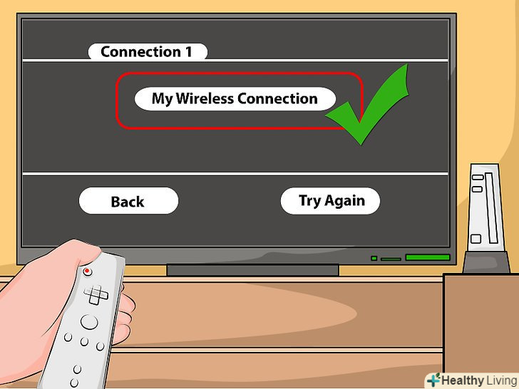 Виберіть свою мережу. Ви побачите ім'я своєї мережі. Виберіть її і введіть пароль, якщо він є. Натисніть ОК.- Якщо ваша точка доступу не відображається в списку, перевірте, чи достатньо близько знаходиться Wii від роутера, і чи правильно налаштована мережа.