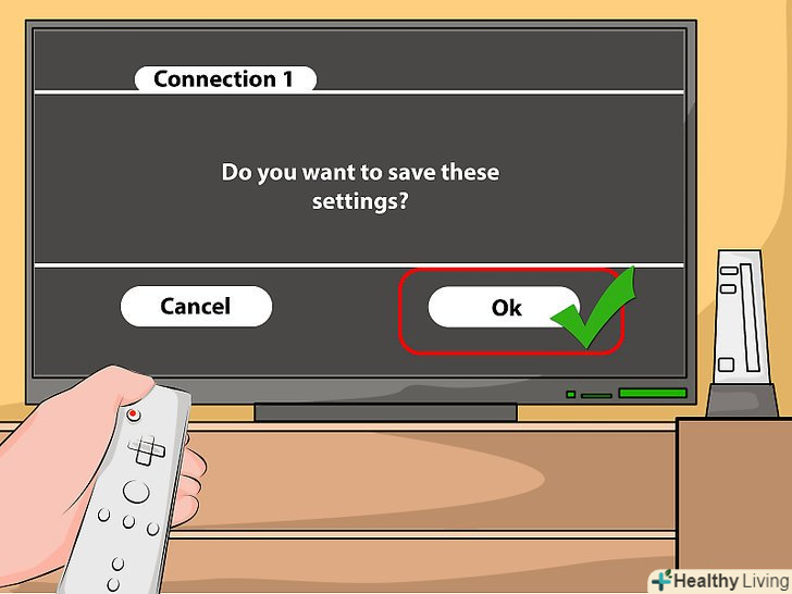Збережіть налаштування.після того, як ви ввели всю інформацію, Wii запропонує її зберегти. Потім почнеться перевірка з'єднання.