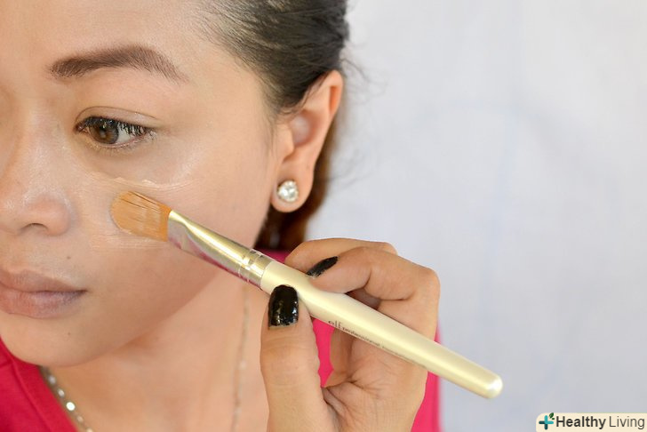 Не варто брати занадто велику кількість основи, інакше зробите пори ще помітніше. нанесіть основу тонким рівним шаром.- Щоб нанести рівний шар, використовуйте спонж або спеціальну кисть. Ви також можете наносити основу за допомогою пальців, але вона ляже на обличчя рівніше, якщо ви скористаєтеся спонжем або пензлем.
