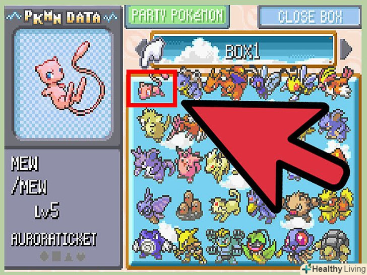 Переконайтеся, що перше місце в Box 1 порожнє.Мью замінить будь-якого покемона, який буде на цьому місці, тому звільніть його.