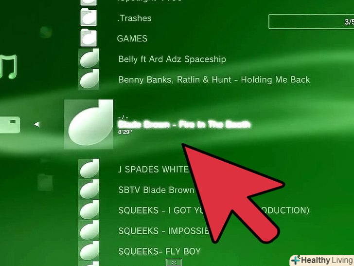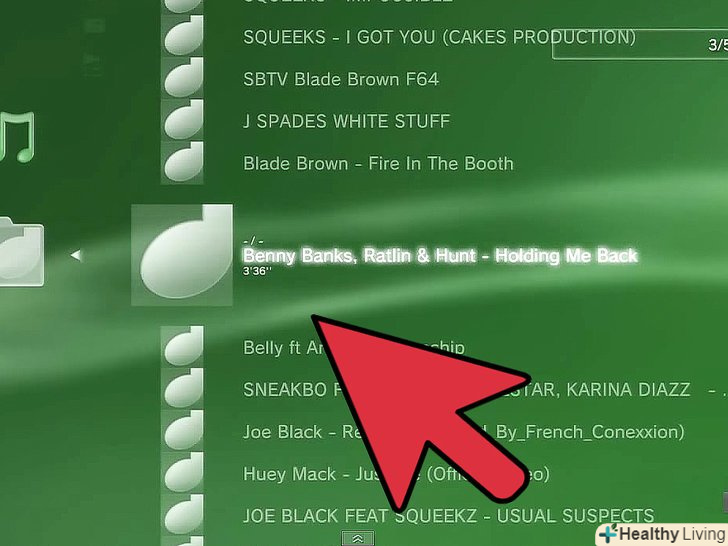 Коли це зробите, помістіть всі потрібні пісні в плейлист.щоб зробити це, перейдіть до потрібної пісні (- ям) і натисніть 'Triangle'.