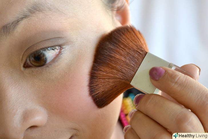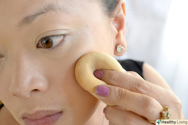 Додайте тональну основу. Вам може знадобитися ваша звичайна тональна основа і хайлайтер на верхній частині деяких областей, таких як щоки і повіки, в якості першого шару. Тональна основа повинна бути трохи більш помітною, ніж зазвичай, тому що на фотографіях спалах, як правило, робить вас блідіше і трохи розмитим, а тональна основа допомагає усунути ці проблеми. Якщо ви використовуєте пудру, то лише дуже тонким шаром, тонше, ніж зазвичай, просто для того, щоб «закріпити» тональну основу і дозволити їй довше триматися на обличчі. Таким чином, вона не зробить тональну основу блідіше, ніж вона є. Використовуйте напівпрозору пудру, так як вона не змінить колір тональної основи.