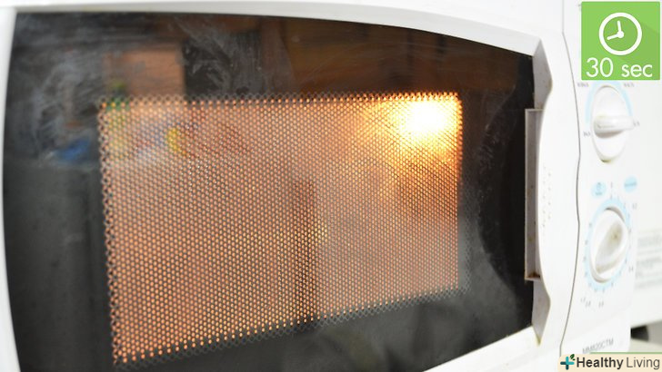 Потримайте спонж в мікрохвильовій печі 30 секунд. Увімкніть мікрохвильову піч і потримайте в ній спонж протягом 30 секунд. [3]- Спостерігайте за спонжем. Не переживайте, якщо він злегка набухне або якщо від нього буде виходити пар. Вимкніть піч, якщо спонж збільшиться в два рази або якщо помітите Темний дим.
