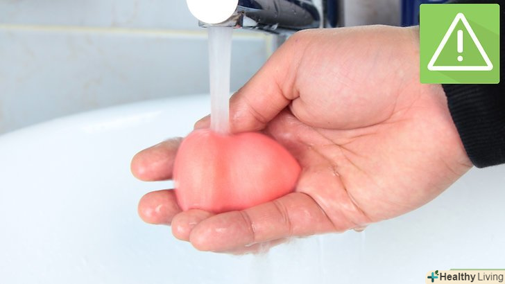 Запобігайте появі прищів, регулярно очищаючи і замінюючи Старий спонж на новий. Спонжі для багаторазового використання виготовляються з поролону, що володіє протимікробну дію. Хоча такі високоякісні косметичні губки можна використовувати багаторазово, в них можуть накопичуватися бактерії і їх стан може погіршуватися, якщо за ними не доглядати належним чином і час від часу не замінювати старий на новий.- Очищайте спонж, призначений для багаторазового використання, не рідше одного разу на тиждень. Якщо ваша шкіра схильна до появи прищів, очищайте спонж після кожного використання.