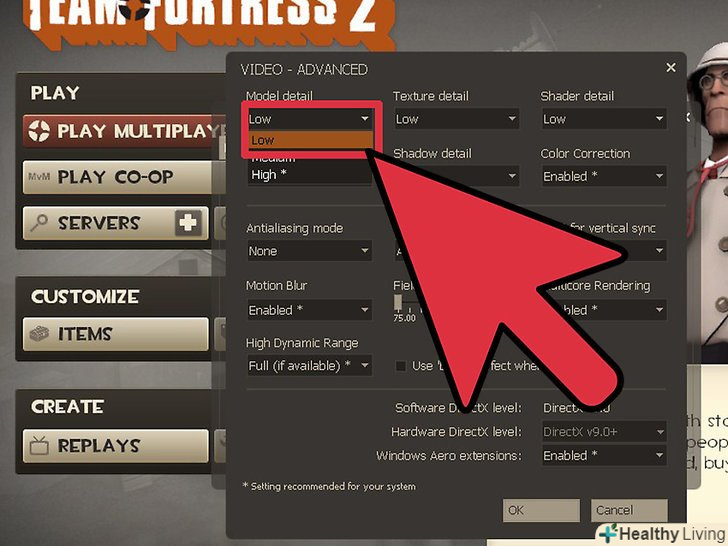 - Звук, як не дивно, переведіть на режим "високий", так як в ТФ2 звук вкрай важливий.