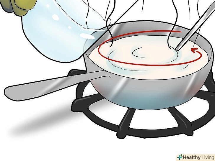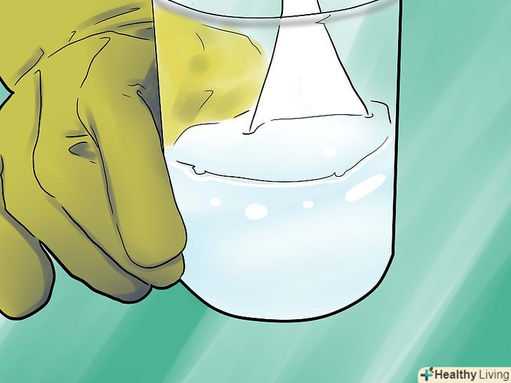 Приготуйте лужний розчин. для цього в воду потрібно всипати луг і акуратно розмішати. Додавання в воду лугу супроводжується виділенням тепла, тому дотримуйтесь запобіжних заходів.