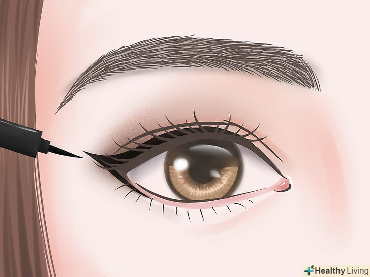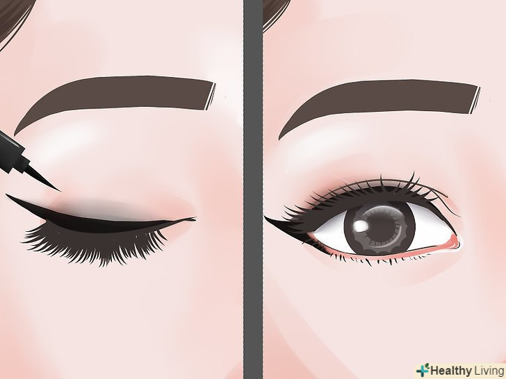Скористайтеся підведенням для очей. зробіть Стрілки за межами очей, злегка заведіть стрілки наверх, щоб у вас вийшов котячий погляд. Потім злегка підведіть очі знизу, по лінії вій — не довше, ніж на три міліметри. Таким чином ви додасте очам вид, схожий з тим, що використовують кореянки.- Підводка для очей надасть вашим очам сяючий вигляд. Популярністю користуються наступні кольори: золотий, білий і кремовий.