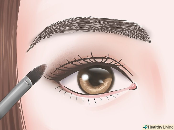 Нанесіть тіні на повіки. використовуйте той відтінок, який хочете, але пам'ятайте, що коричневі відтінки виглядають найкраще. Більш темний відтінок нанесіть на зовнішній край ока, щоб створити 3D-ефект.