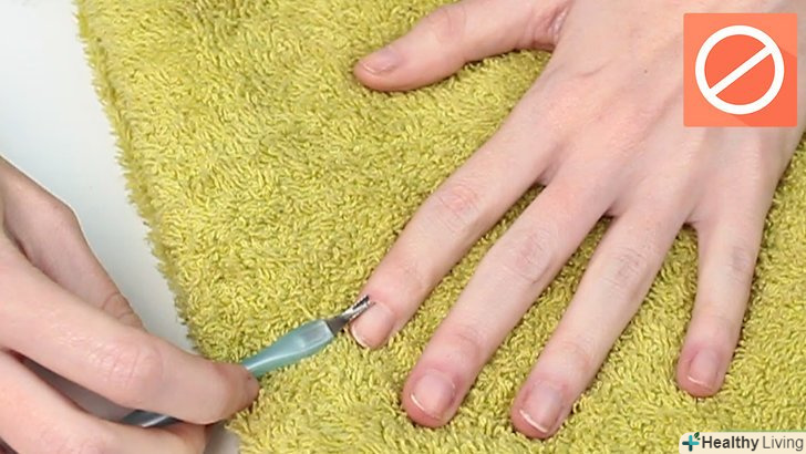 Не віддирайте задирки. це дуже часто призводить до пошкодження здорового покриву нігтів подушечки, що виглядає негарно і може привести до інфекції.- Нігті повинні бути сухими. зайва вологість може зробити нігті ламкими і шаруються. Тому мийте посуд в спеціальних рукавичках і намагайтеся не тримати руки у воді руки, коли приймаєте ванну. [4]