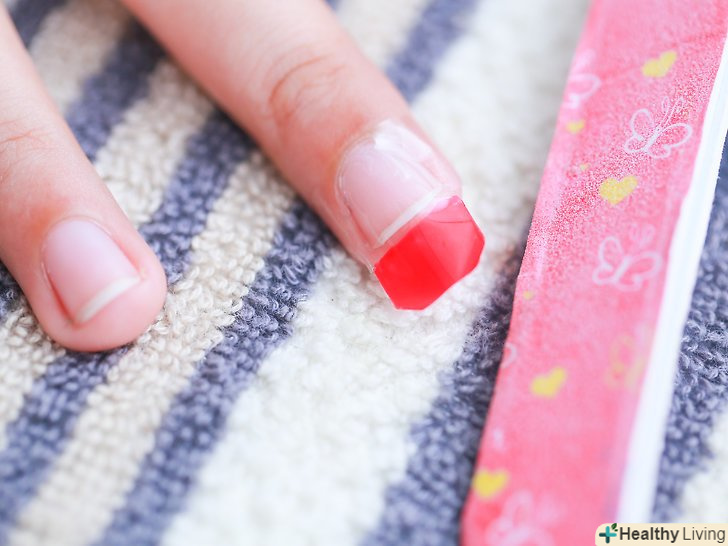 Якщо потрібно, зітріть лак засобом для зняття лаку і не забудьте протерти нижню частину нігтя. [3]
