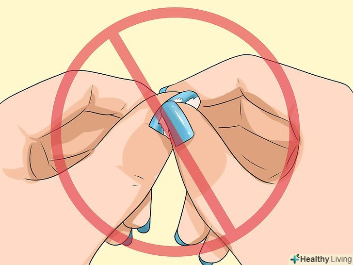 Припиніть колупати облуплений лак. роблячи це, ви знімаєте верхній шар нігтьової пластини. І через це формується слабке підставу нігтя. [3]