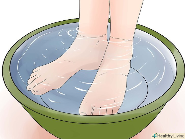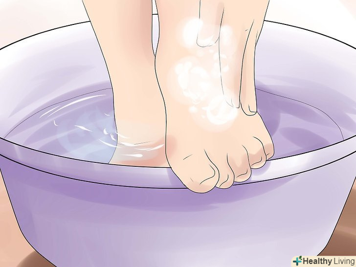 Сполосніть обидві стопи в теплій, мильній воді у ванні або тазику.