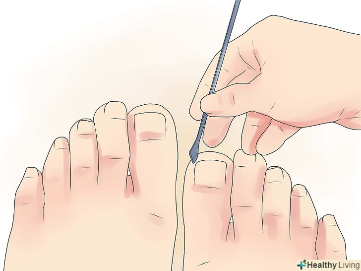 Підстрижіть або підпиляєте пилкою нігті на великих пальцях. нігті треба підпилювати прямо, злегка закругляя куточки і формуючи форму нігтя великого пальця. Ніколи не підстригайте або не підпилюйте ніготь так, щоб спровокувати його вростання.