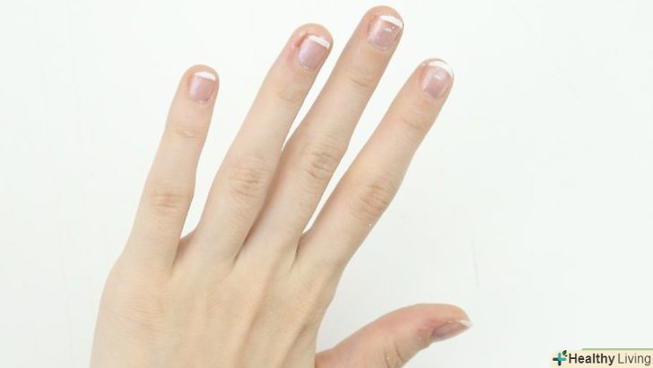 Зробіть французький манікюр. французький манікюр полягає у використанні натурального рожевого і персикового відтінків лаку з білими кінчиками нігтів. Він надає рукам вишуканий вигляд і при невеликій практиці його можна буде зробити вдома.- На противагу тому, що ви могли подумати, білий кінчик забарвлюється в першу чергу з використанням спеціального білого лаку, який можна знайти в більшості комплектів для виконання манікюру. У цих же комплектах можна знайти спеціальні наклейки на нігті, які дозволять вам нанести ідеально рівну білу смужку по краю нігтя. В іншому випадку, вам буде потрібно дуже тверда рука!