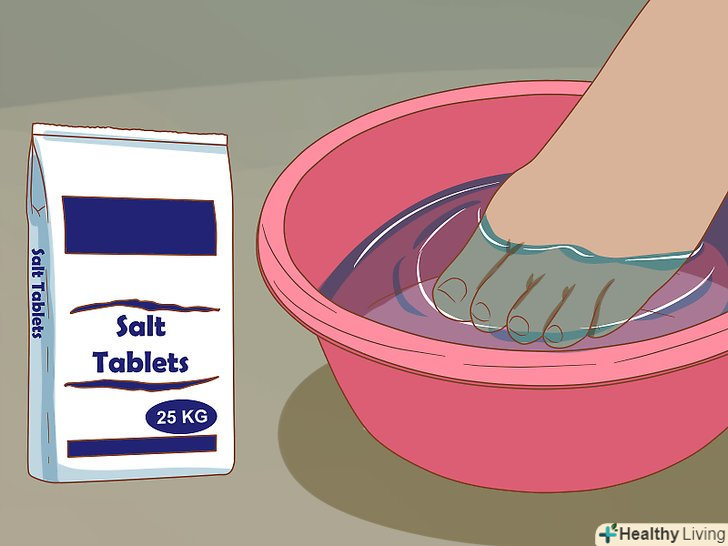 Вимочуйте ніготь в теплій воді з сіллю 2-3 рази на день, щоб запобігти інфекції. сольові ванночки допоможуть очистити палець, вбити бактерії і прискорити загоєння. Розведіть 1 чайну ложку (близько 5 грамів) солі в 1 літрі теплої води і залийте розчин у велику миску або тазик. Вимочуйте палець в цьому розчині по 20 хвилин 2-3 рази на день. [13]- Це лікування найбільш ефективно протягом декількох перших днів після втрати нігтя. Можливо, доведеться почекати 24-48 годин після отримання травми, перш ніж почати робити ванночки, тому проконсультуйтеся з цього питання з лікарем.