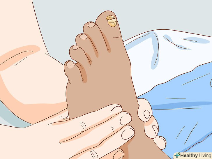 Робіть масаж, щоб поліпшити кровообіг в ступні. іноді недостатній кровообіг в ступні може уповільнити зростання здорового нігтя і привести до його слабкості. [21] Подумайте про те, щоб звернутися до професійного масажиста або робити масаж самостійно вручну або за допомогою масажного ролика для стоп. [22]- Масаж ступні особливо корисний при захворюваннях, які негативно впливають на кровообіг в ногах (наприклад, при цукровому діабеті).