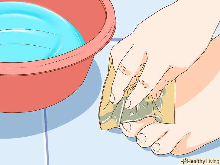 Промийте палець ноги чистою водою через 2 дні після пошкодження. після перших 24-48 годин спокою і загоєння можна почати мити пошкоджене місце чистою теплою водою. Обережно мийте його два рази на день. [6] це допоможе змити бактерії, бруд і ворс, що залишився після одягу або бинта.- Можна також мити пошкоджене місце м'яким милом, однак будьте обережні і не використовуйте миючі засоби з жорсткими ароматизаторами або барвниками, так як вони можуть висушувати і дратувати рану.