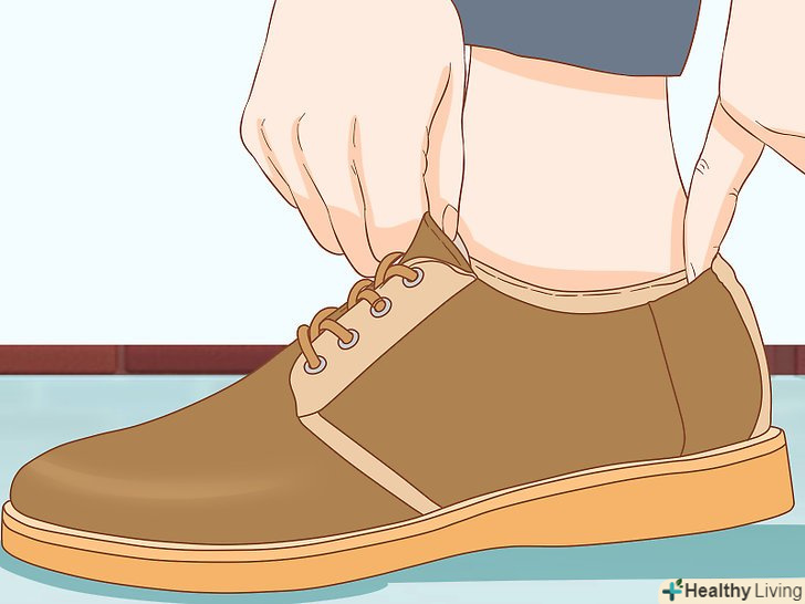 Носіть відповідне за розміром взуття, щоб уникнути подальших пошкоджень. якщо взуття буде занадто тісною (і особливо з високим каблуком), ви можете натерти пальці і погіршити пошкодження нігтьового ложа. У цьому випадку пальці ніг матимуть мало місця для руху протягом тривалого часу, що може уповільнити зростання нігтя. [11]- Намагайтеся також не зупинятися різко. Наприклад, якщо ви бігли, поступово перейдіть до ходьби, щоб пальці ніг не подавалися різко вперед і не вдарялися об шкарпетки взуття.