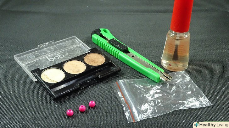 Зберіть необхідні складові. ви можете зробити лак для нігтів, який світиться тільки в темряві, змішуючи його ультрафіолетовими / мерехтливі тінями. Майте на увазі, що цей лак виблискує тільки в темряві. Ось повний список того, що вам знадобиться: [5]- Ультрафіолетові / мерехтливі тіні для повік