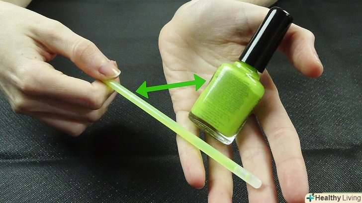 Виберіть лак для нігтів і кольори світяться паличок. можна використовувати як прозорий лак, так і кольоровий. Якщо ви виберете кольоровий лак, переконайтеся, що колір лаку збігається з кольором світиться палички. Наприклад, якщо ви використовуєте рожеву світиться паличку, тоді використовуйте і лак для нігтів рожевого кольору.- Прозора лакова основа дасть найкраще сяйво. Її, також, можна нанести як верхній шар на матовий кольоровий лак.