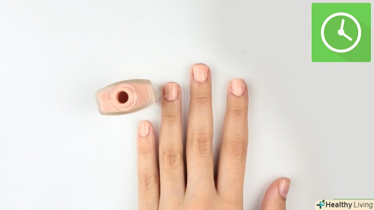 Дайте нігтям висохнути. намагайтеся не рухати пальцями, а то покриття буде змазано. Зачекайте 10 - 15 хвилин, поки покриття не висохне. Якщо ви нанесете другий шар занадто рано-це тільки зашкодить нижній шар. Ви можете прискорити висихання лаку феном, але не будьте надмірно оптимістичні. Використання фена може пересушити ваші нігті.- Після того як перший шар висохне, ви, якщо захочете, можете нанести другий шар. З ним колір покриття буде виглядати більш насиченим, а текстура нігтя - більш гладкою.
