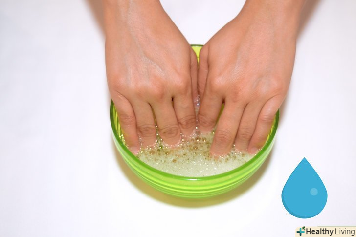 Зробіть ванночку для рук. візьміть миску середнього розміру і наповніть її теплою водою приблизно на 10 см. [1] опустіть руки в воду, переконавшись в тому, що нігті і навколишня їх кутикула повністю опинилися під водою. Відмочуйте руки близько п'яти хвилин.- Тепла вода допоможе розм'якшити шкіру навколо нігтів, щоб спростити і зробити безболісними наступні процедури.