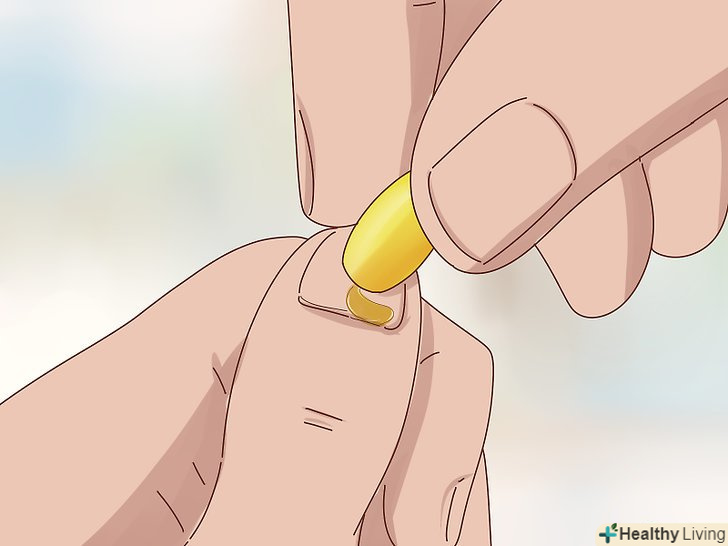 Акуратно втирайте Вітамін Е в кутикулу і в сам ніготь. це допоможе заповнити розшарувані поверхні, які залишаються після більшості акрилових засобів.