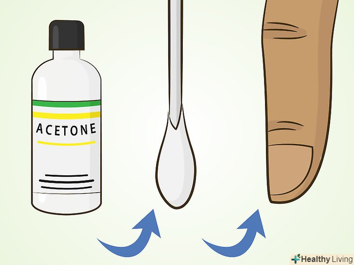 Будьте обережні, змінюючи лаки. основний інгредієнт в більшості засобів для зняття лаку (ацетон) може з легкістю роз'їсти нігтьові пластини, якщо використовувати його неправильно. Беріть лише мінімальну кількість засобу, необхідне для зняття лаку, і наносите його на ватний диск, а не прямо на ніготь. [18]